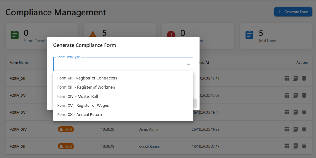 Geekhub Tech Solutions is a leading CLMS solution provider from India, delivering state-wise compliant Contract Labour Management System solutions aligned with Indian labour laws, including the Contract Labour (Regulation & Abolition) Act, 1970 and its varying thresholds across all states and union territories. Whether you are managing contractors across multiple Indian locations or navigating complex central and state-level CLRA, Shops & Establishment, and allied compliance requirements, our CLMS software digitizes registers, automates licence and registration tracking, reduces non-compliance risk, and helps your organization stay audit-ready—every single time.